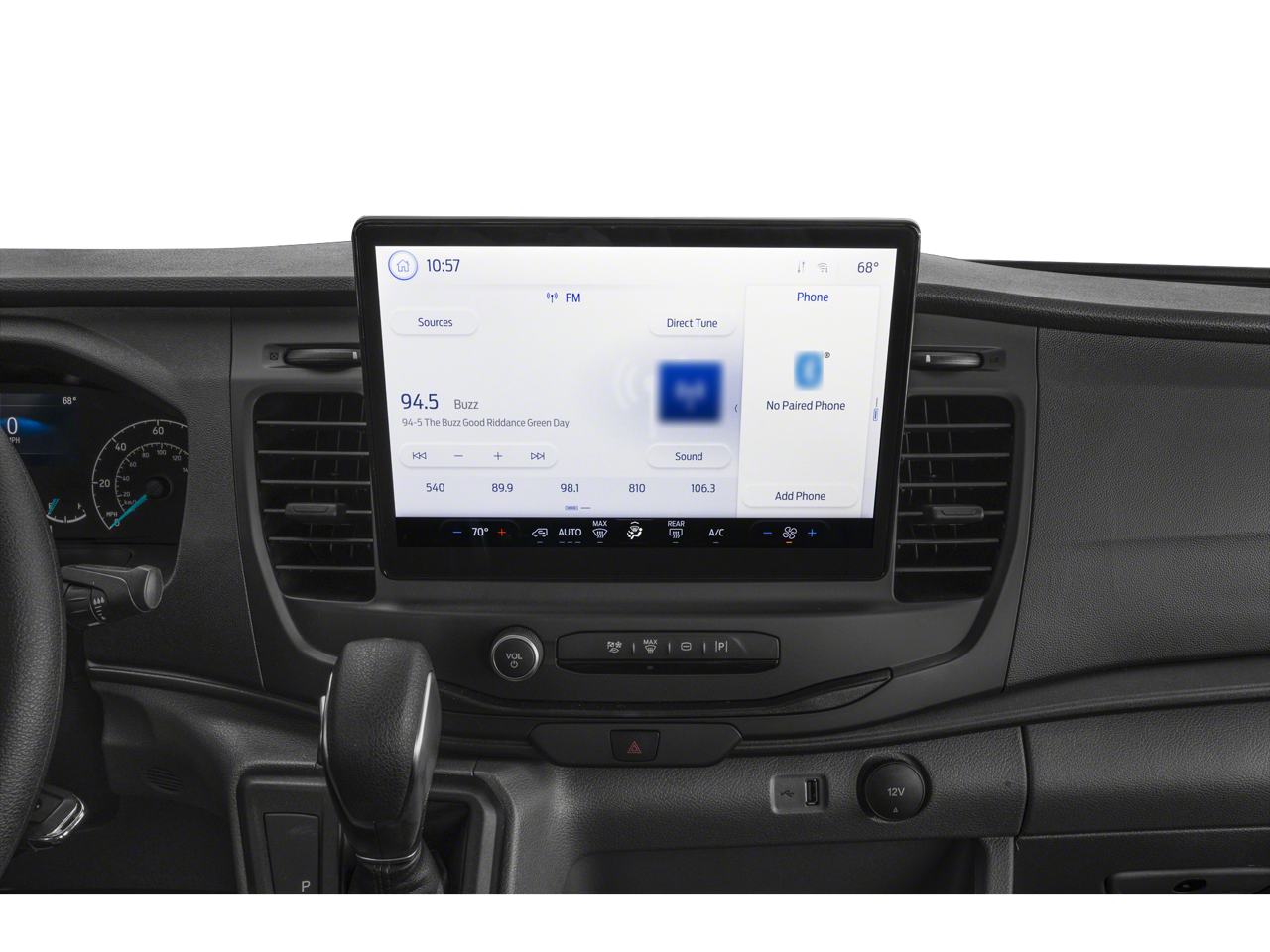 - Radio: AM/FM Stereo w/SYNC 4 & Nav -inc: 12" display, Bluetooth, dual USB ports, embedded voice recognition, connected navigation (90 day trial) and 8 speakers (4 front/4 rear)