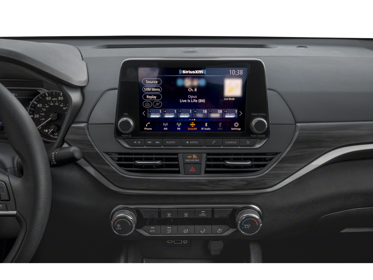 - Radio: AM/FM Audio System -inc: RDS, MP3 and aux-in, 6 speakers, NissanConnect 8" color display w/multi-touch control, Bluetooth hands-free phone system, streaming audio via Bluetooth, hands-free text messaging assistant, 2 front illuminated USB ports (1 type-A and 1 type-C) for compatible devices, Apple CarPlay, Android Auto, SiriusXM Radio, Siri Eyes Free, Google Assistant voice recognition and 2 rear illuminated USB ports (1 type-A and 1 type-C)